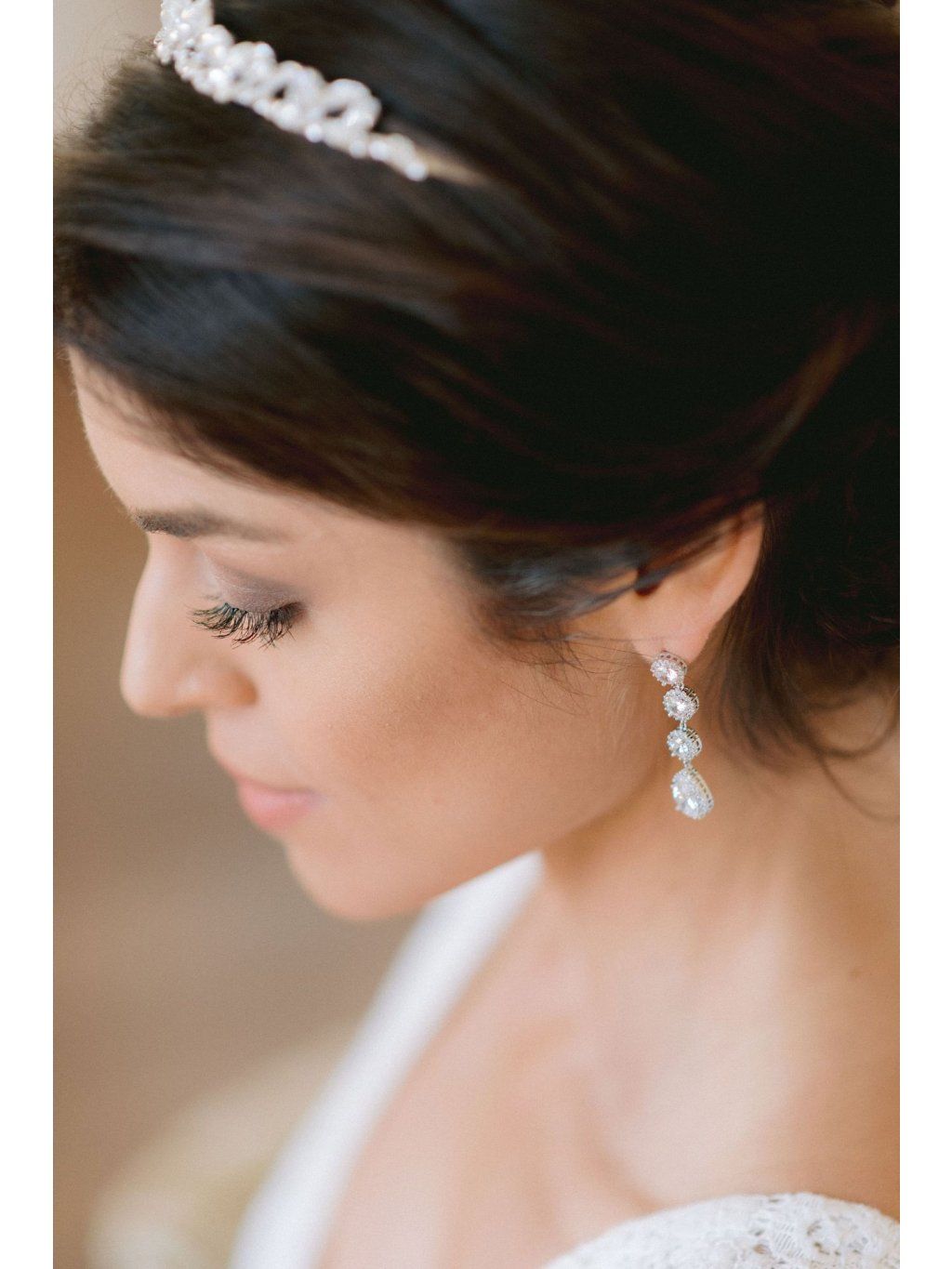 Elegantní svatební náušnice zdobené krystaly kubické zirkonie.
