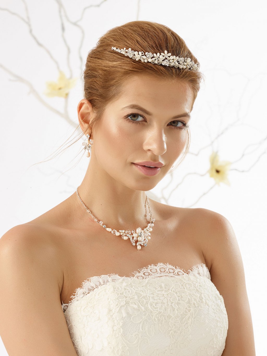 Svatební čelenka do vlasů z krystalů a perel D-33