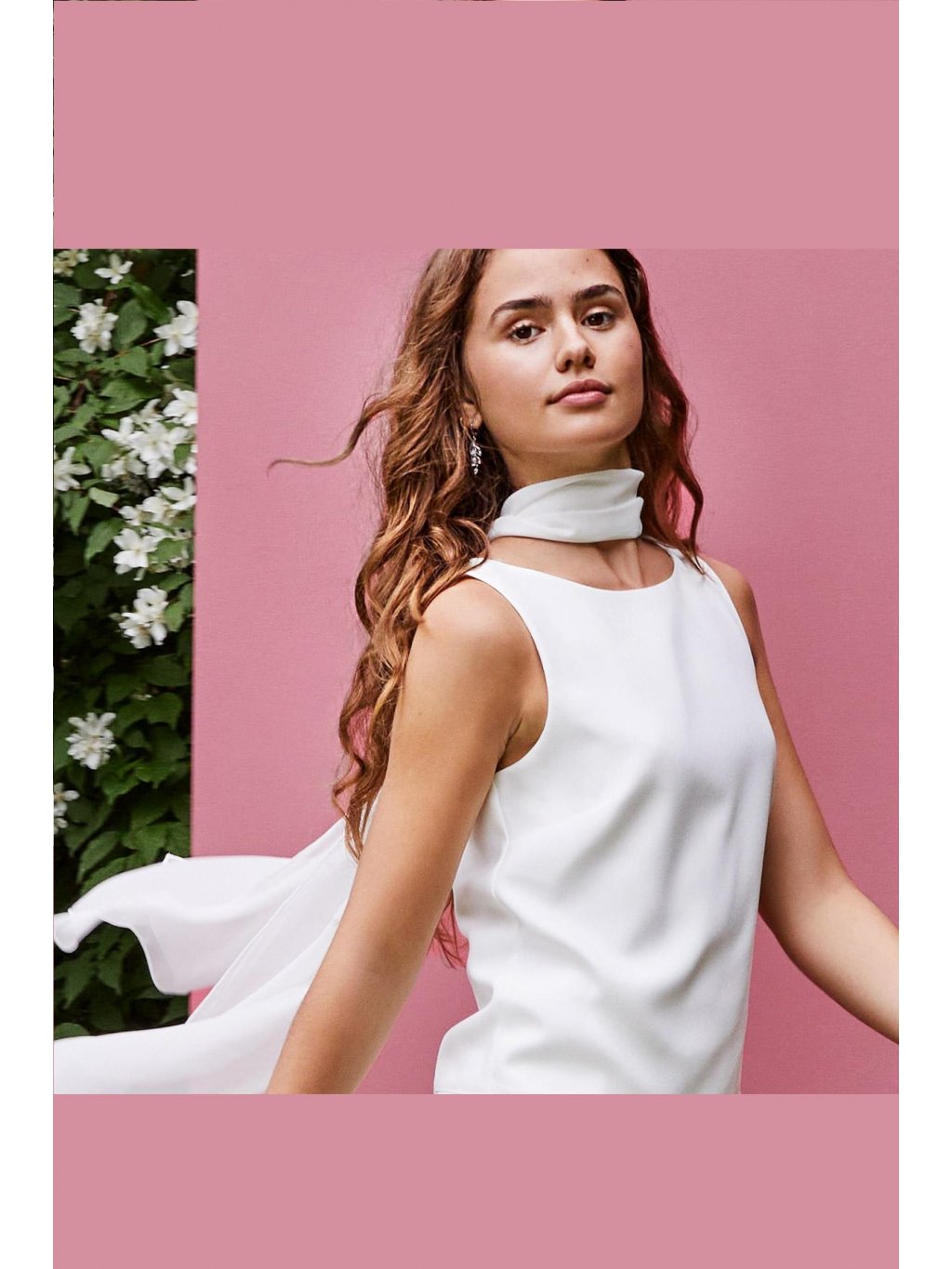 Svatební šaty můžete doplnit lehkou šálou ze šifonu